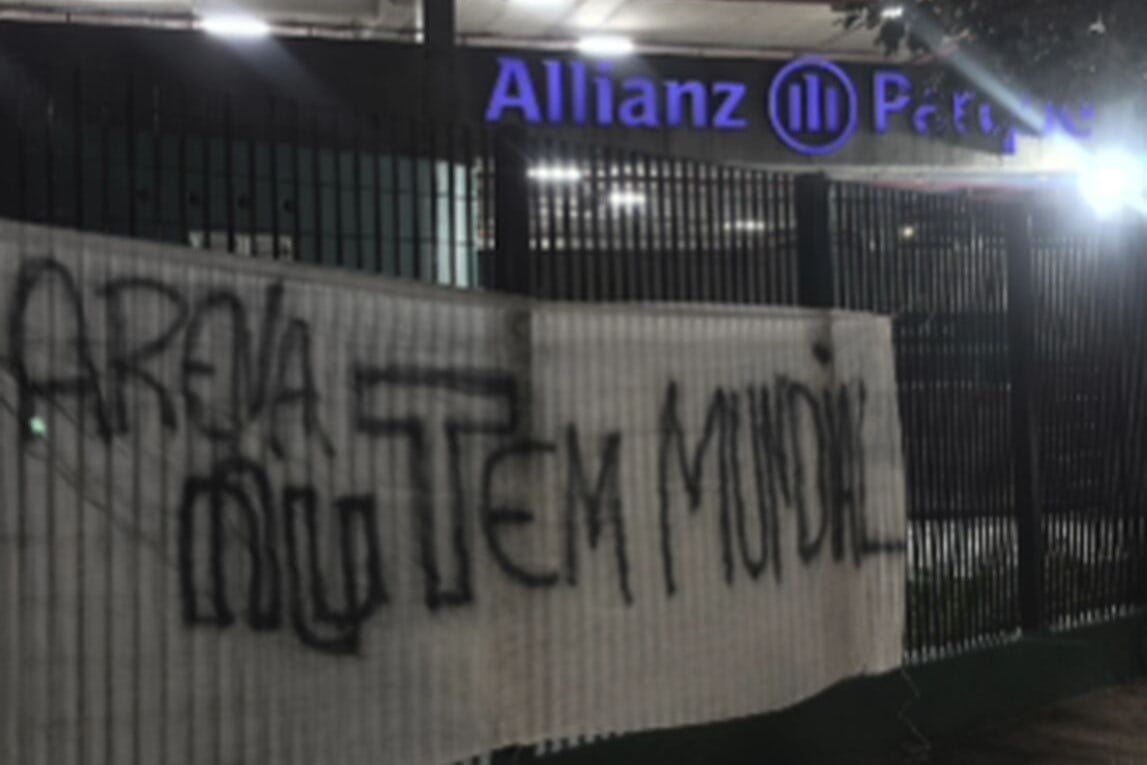 Na faixa, os torcedores do Corinthians escreveram a frase "Arena Nu tem Mundial". Com essa mensagem, eles fazem uma alusão ao fato de que o Palmeiras nunca conquistou um título internacional. Além disso, a faixa também se refere ao NuBank, que adquiriu os direitos de nome do estádio do Palmeiras. Por outro lado, o Corinthians já possui duas conquistas desse torneio, nos anos de 2000 e 2012.